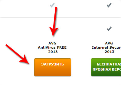 Перейдя по ссылке опускаемся по странице вниз и скачиваем бесплатную версию антивируса AVG кликнув по первой оранжевой кнопке.