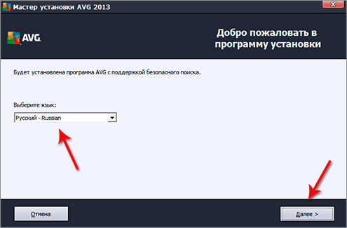 В первом открывшемся окне выбираем русский язык для установки и нажимаем кнопку «Далее».