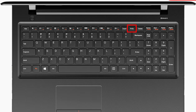 Кнопка расположена в верхнем ряду. Обычно, между F12 и Pause. Но на компактных моделях лэптопов, особенно на ультрабуках, свои особенности. В частности, на рисунке показана кнопка PrtSc на ноутбуке Lenovo.