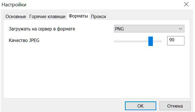 Важная особенность Lightshot – в настройках указывается формат файла с рисунком, записываемого на диск или в облако, и качество в процентах. Чем выше значение, тем меньше потерь при сохранении, но тем больший размер файла получится. Lightshot — единственная бесплатная программа обзора с такой функцией.