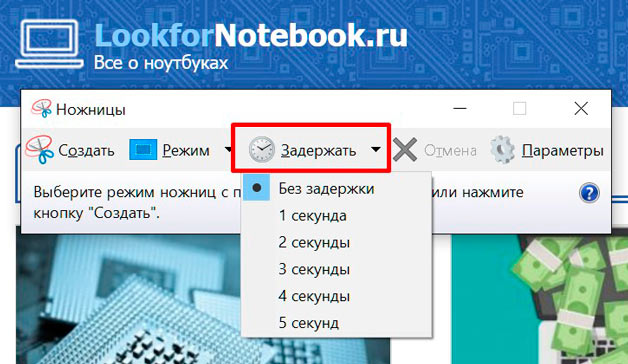 Предусмотрена функция отложенного запуска, которая позволит сделать скриншот через несколько секунд после нажатия кнопки Создать. Она полезна для выполнения фотографии дисплея в игре или приложении, блокирующем действия системных кнопок.