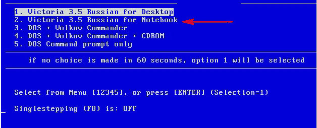 - Запустите Victoria с созданного загрузочного диска. Не забудьте отключить Secure Boot, если в вашем лэптопе используется новый BIOS UEFI.