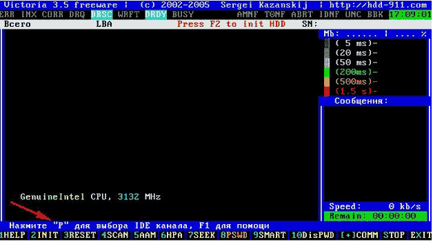 - В открывшемся окне приложения нажмите «P», чтобы выбрать жесткий диск, с которым предстоит работать.