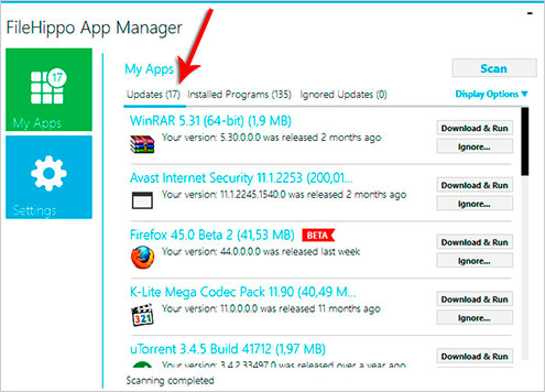 Обновить программы с помощью FileHippo App Manager