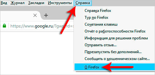 Чтобы обновить браузер Мозила нужно открыть нажать клавишу Alt и перейти в появившееся меню Справка, затем О Firefox.