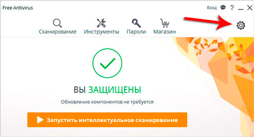 Чтобы обновить антивирус Аваст нужно нажать по шестеренке.
