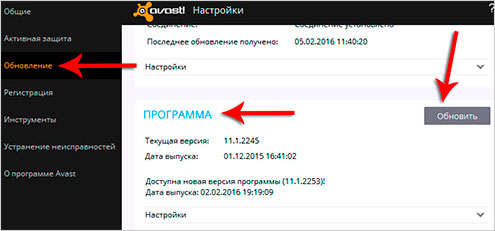 Затем открыть вкладку Обновление и внизу в разделе Программа нажать кнопку Обновить.